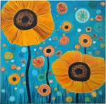 Main techniques: acrylic on canvas, acrylic with liquid gold leaf, fine linear graphics.