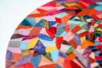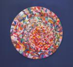 Fervently playing with the glare of light, a kaleidoscope of colors swirls in a whirlwind of bright colors. The tableau is executed in rich shades of red and burgundy.