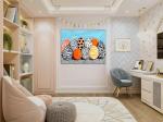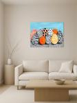 Keywords: Modern abstract art, professional artist, high-quality art paper, Easter, orange, abstract painting, black and white, pattern Russian artist, textured painting, colorful horizon, ocean landscape, stylish painting, egg, impressionist abstraction, port art,