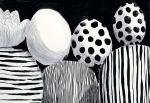 a sphere adorned with bold black dots, adding a touch of whimsy;