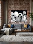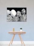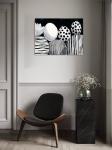 Keywords: abstract art, naive art, black white, spherical shapes, graphic design, limited edition, primitivism style, monochrome art, artistic spheres, stylized flower, bold contrast, rhythmic design, modern naive, abstract composition, artistic poster
