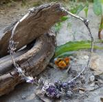 The necklace is made in the authors technique of silver with blackening with natural amethysts