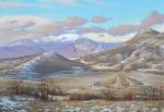 Baranya bushes in Koktebel, on the background of vague Karadag