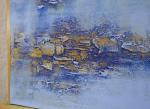 Stylish texture painting in blue. Acrylic gold glitters at different angles.