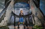 Above her is an open dome of the sky, in which clouds swirl. They reflect anxiety and hope, chaos and harmony, like the history of mankind itself.