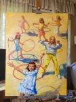 Dance of the Solar Orbits" is an oil painting on canvas (120x90 cm), which brings to life the joy of childhood. Against the backdrop of golden light, children play with hoops, creating their own solar orbits. Their movement is a symbol of freedom, harmony and the endless energy of life.