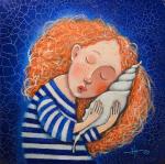 Acrylic paints using craquelure varnish. It is varnished and signed by the author, that is, me.
