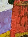 Painted in the expressive and heartfelt style of naive art, the piece conveys simplicity, sincerity, and a nostalgic festive atmosphere. The textured brushstrokes and bright, welcoming palette create a sense of comfort and warmth.