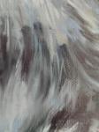 Linen canvas, without varnish. A fluffy, thoughtful, cute creature surrounded by the blue color of dreams and tranquility. The plot combines the interaction of a motionless stone and a warm animal full of inner strength.