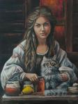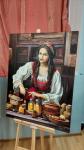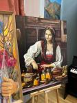 The work "Honey Spas" is part of the Russian-Slavic series. Being interested in the culture and traditions of his country, he decided to create a series of works that would reveal the soul of the Russian people. Within the framework of the series, plot compositions are created that show the atmosphere of the traditional life of the Russian people.