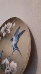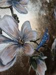 An exquisite acrylic painting on a golden potali background. Opening magnolia flowers in soothing nude tones and birds fluttering around the flowers. The texture paste adds volume to the colors. The side edges of the painting are also decorated with potala, which gives the painting a gift-like appearance. This painting is a great gift for the romantic interior of a bedroom, living room or hallway.