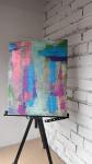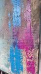 An abstract painting is executed in a vibrant color scheme, dominated by shades of pink, magenta, and turquoise-blue, complemented by accents of green, dark violet, and neutral beige-gray areas. The composition is built around the intersection of large vertical and horizontal brushstrokes, creating a dynamic rhythm and a sense of internal tension. The thick, multi-layered application of paint forms a relief texture, while pronounced craquelure (cracks on the surface) enhances the three-dimensionality, adds a vintage feel, and creates an additional visual rhythm — light and shadow play within the cracks, emphasizing the brushstrokes. The contrast between the lines and saturated colors is combined with the contemplative quality of the muted tones, making the work multi-layered and inviting the viewer to contemplate.
