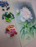 This exquisite pastel work depicts a pale pink peony that seems to hover against a gray background. The artists skill is shown in free, expressive strokes that convey the soft texture of the petals and their subtle gradation of color. Delicate transitions and noticeable strokes create a feeling of lively movement and delicacy of the flower, emphasizing its fragile beauty and grace. The gray background serves as a calm foundation, allowing the photographer to stand out and become the center of attention, while adding modern restraint and elegance to the work. This painting is a harmonious combination of tenderness and expressiveness, where each line emphasizes the natural sophistication of the flower and the artists skill in working with pastels. This work can be placed in various interiors to emphasize its tenderness and elegance.: