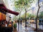 Venetian landscape with oil paintings, copy of Rubens Santoros picture "Family picnic on the Venetian canal" (A family outing on a venetian canal)