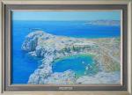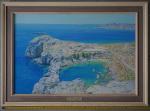 In creating this piece, I sought to capture the serene yet vibrant essence of a secluded coastal scene. With each stroke, I blended the fine art techniques of realism and impressionism, bringing to life the vivid blues of the sea and the sunlit cliffs. The use of oil paints allowed for deep, rich colors that convey the warmth of the sun and the freshness of the sea breeze. This painting is a testament to the enduring beauty of nature, inviting viewers to feel a sense of peace and wonder. Climbing to the top of the hill in Lindos, where the ruins of ancient temples have been preserved, I saw a view of the heart of Lindos.