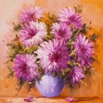 "Still life with oil" Bouquet of yellow asters on the table ""