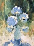Hydrangeas is in a vase. Lots of light and air. Delicious complex colors, contrasts, overflows from one color to another. The picture is written in the style of impressionism. High-quality oil paints do not dry out over time.