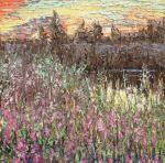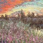 Original oil painting on canvas, summer landscape, lake painting, quiet summer evening, evening sunset, contemporary impressionism, palette knife texture painting for decor, perfect gift for any occasion