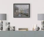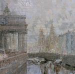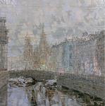 Petersburg white nights, bridge painting cityscape, urban skyline painting, foggy city painting, textured painting with palette knife, aesthetic room decor