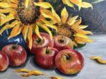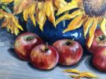 Sunflowers and red apples