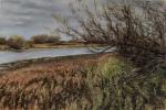 Linen canvas, without varnish. There is no one here, silence and peace. The grass makes a little noise, the water gurgles, and the branches gently tap.