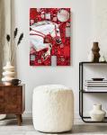 White, smoky, silver, and pearl tones complement vibrant burgundy, scarlet, and blood-red hues, creating a bold contrast.