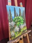 A bright, sunny, and expressive sketch, painted from memory during a trip to New Athos on a sunny day in late May. It will decorate any interior and create a bright and cheerful mood, delighting with its slightly impasto texture.