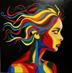 a strict rainbow tail organizes the chaos of hair and thoughts