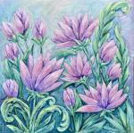 The folds of drapery embrace the flower, transforming the canvas into a union of painting and decorative sculpture. The work combines the tenderness of color with sculptural depth: subtle golden accents shine discreetly, adding nobility to the overall image. In an interior, this artwork appears as a refined ornament, bringing elegance and light. It will be especially harmonious in a living room, bedroom, art hall, or an intimate space where beauty and symbolism are valued.