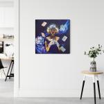 This original acrylic painting (50 50 cm) presents a poetic and slightly theatrical scene centered around a mysterious female figure surrounded by playing cards, roses, and floating symbols of love and fate. The composition evokes elegance, romance, and intrigue, blending vintage charm with dreamlike symbolism.