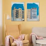 Such a piece will decorate the living room, study or kitchen, filling the space with positive and warm energy. It will appeal to those who appreciate a small homeland, urban comfort and the modern romance of the urban environment. The painting will perfectly fit into the series with other works by the author.Москва, улицы города, бежевый , синий, небо, архитектура, дом, школа, детство, ностальгия,сталинка, хрущевка, романтика, картина для гостиной, московский дворик, небо, солнце, март, весна, уютный, светлое искусство