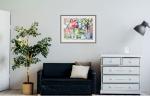 The artwork is framed