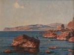 Crimea, seascape, coast, Black sea, Cape Krabiy, bay, sea, seashore, mountains, rocks, stones, sky, clouds