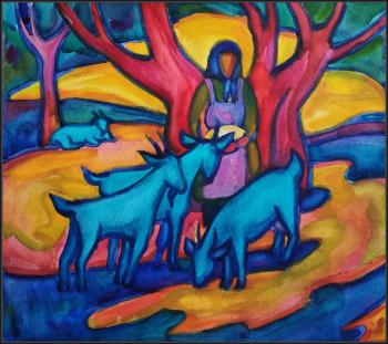 Ivanova Ekaterina. Triptych of rural life. Apple Saved (Blue Goats)