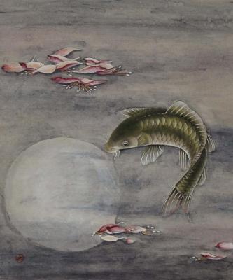 Semenova Elena. Peonies and carps (Girlfriend Painting)