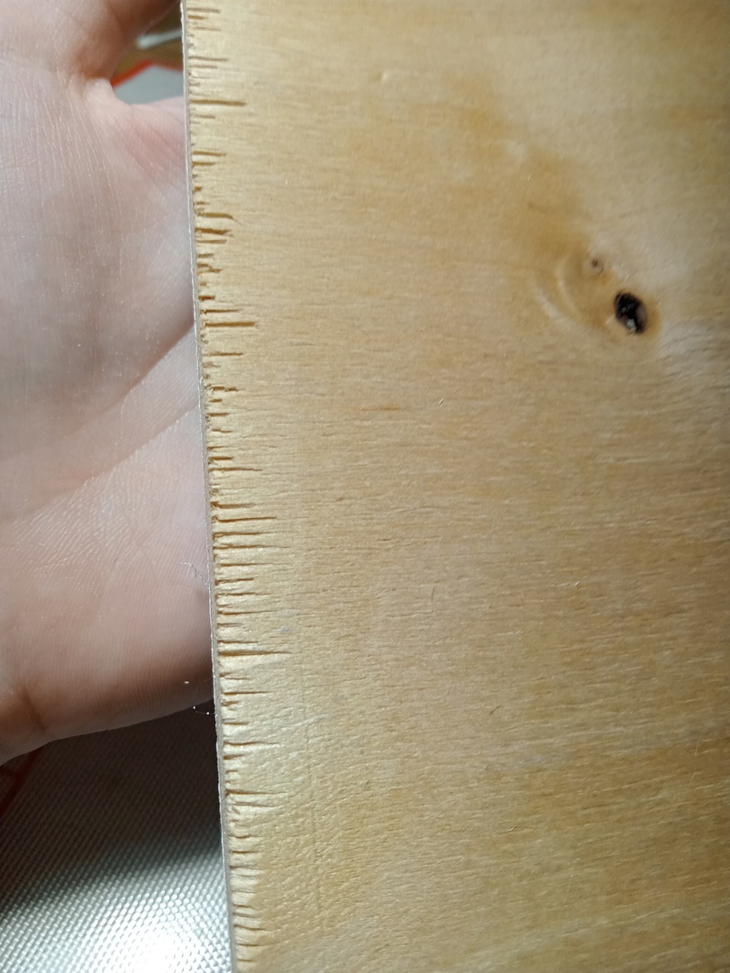 Специально сфотографировал показать. Это результат распилки фанерного листа тупым лезвием