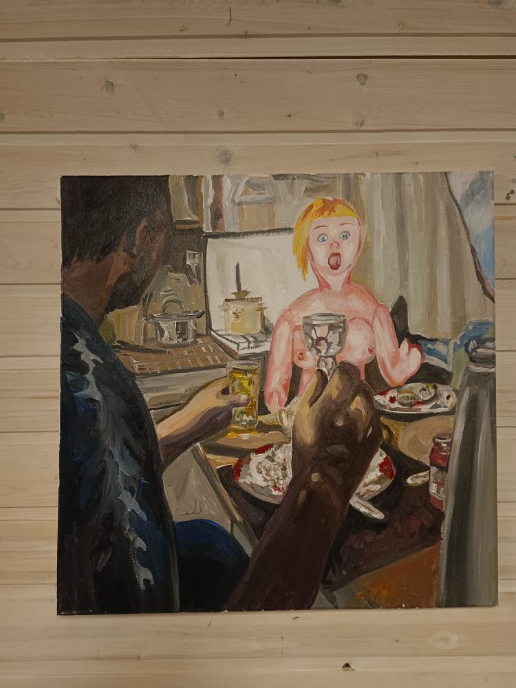 Г-да художники, эту картину увеличить до размера 3на 5, да подключить толкового искусствоведа! В интерьере у солидных покупателей она очень даже впишется! У них принято вешать крупные размеры , "со страшинкой", депрессухой.Если эта работа уже не ушла через солидную галерею.