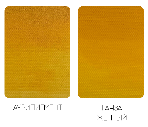 Но потом пришел к тому, что и аналог не очень-то и нужен, разве что для иконописцев, кто синтетикой не работает. В целом можно взять кадмий желтый темный(у меня название пигмента "Светлый", поэтому так и подписан), оттенок почти тот же. А если из органики, то ганзу или арилид.