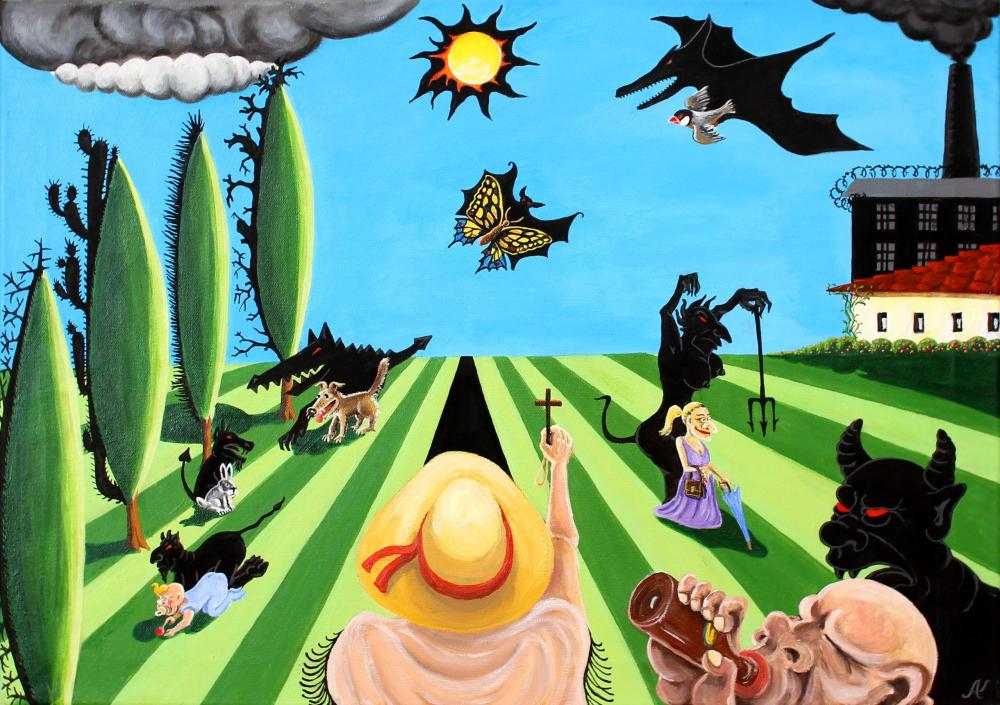 Эка вас понесло, труд, жертва ради высшей цели, даже соцреализм вылез, а это просто пародия на "американскую готику" Гранта Вуда 🤡