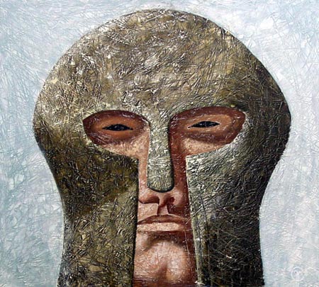 Ух, ты! Может быть.... Какой у него прищур алчный. :) А какая у него прорезь в шлеме фаллическая, а как носик сплющило от доспехов постоянных. Либо мир его так видит? :)