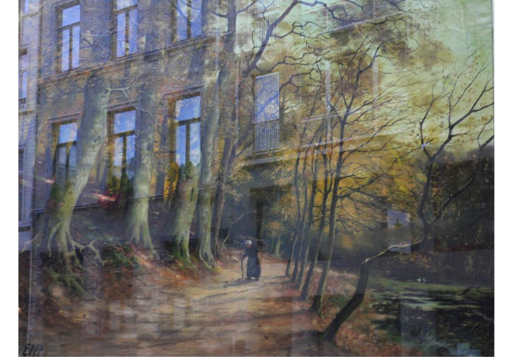 Предыстория приложенного изображения: снимок сделан через окно галереи в Брюсселе, около 10 лет назад. Поэтому очень наложилось отражение дома на оконном стекле. Подпись есть, но даже по подписи не получилось поймать автора. (((