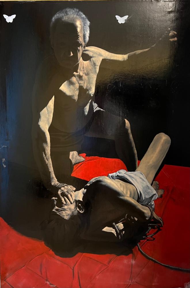 разбирая чердак, нашел картину 100х150, год предположительно 2001-02, на полов Нике написано.