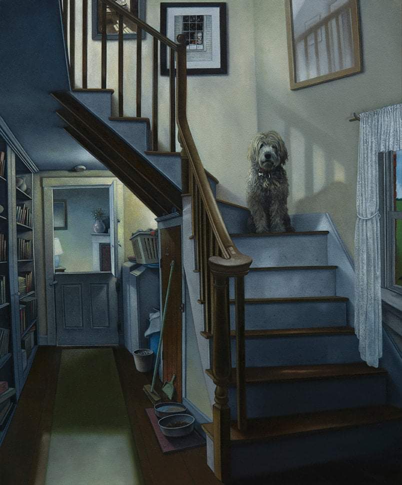 Последняя - жалкий плагиат моей картины из которой убрали бабушку, внучку, один пролет лестницы, надпись "зачем я здесь" и волка превратили в собаку.