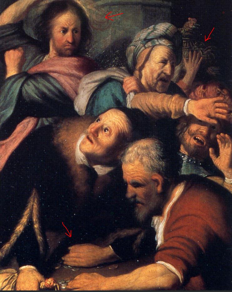 В ранней картине Рембрандта в ГМИИ уже все есьт- компановка,тон и прочии гениальности. Большие сомнения в авторстве картины в предидущем комментарии - руки никак не написаны,даже имееется рука с 3 пальцами,пропорции не ахти - на ювелирную технику Рембрандта не похоже