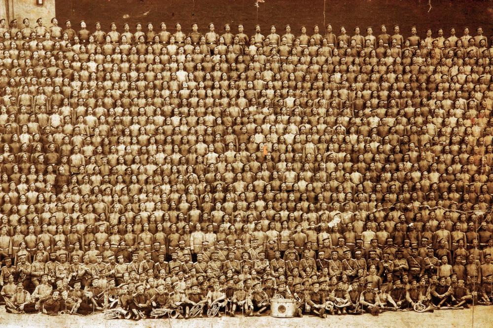 Если фотографию можно отнести к актуальному искусству, то недавно на меня наиболее сильное впечатление произвела уникальная групповая фотография Кексгольмского полка 1903 года . На ней чуть меньше 1000 человек и это даёт понятие о том, как легко оперируют понятиями количества людей, не задумываясь, что это в реальности - тысяча человек.