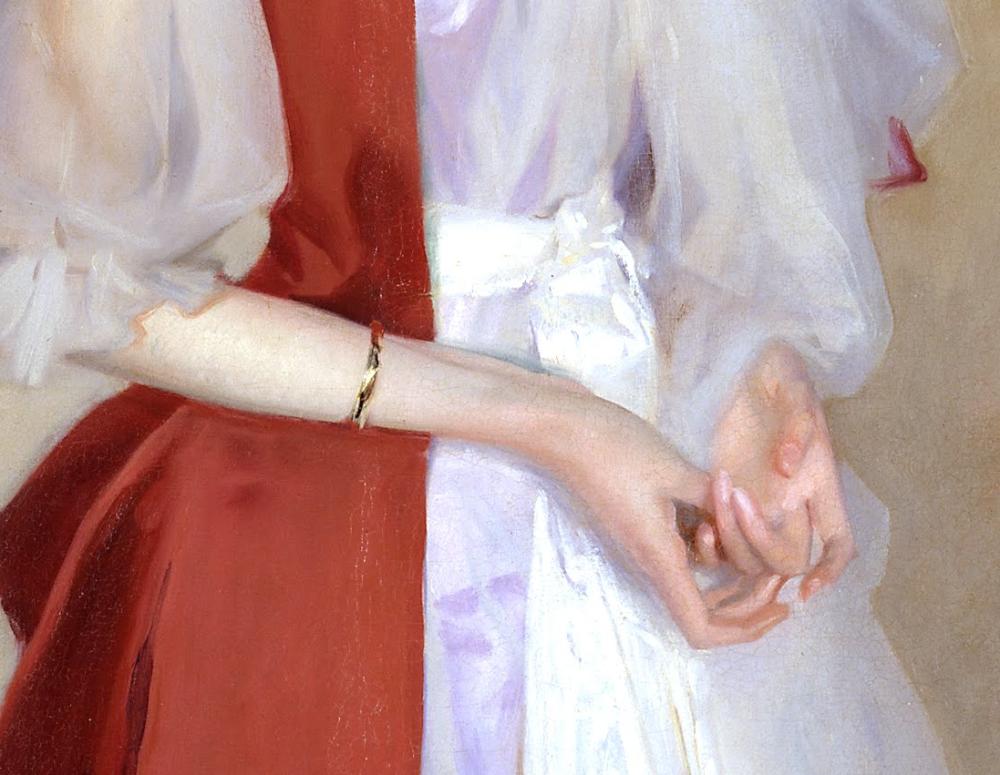 Претензия. Рефлекс - очень слабый ( очень - на репродукциях плохо читается ) - отсвет соседнего предмета в тени. Практически не различим - тот кто пишет его на руке ослабленным красным - ошибается. Сарджент писал как видел - все очень - очень слабо и в тени. ( у него - есть) .Поэтому - правильно и в работе - смотрится, вписано и не напрягает .
