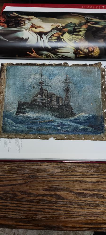 Вторая сделана мастерски в части корабля. И на рее не шары, а конусы. Это другой сигнал, не помню какой, надо искать. Да и не Потемкин это, и флаг кормовой у него корабля английского.