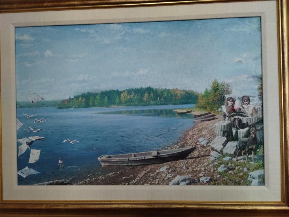 Здравствуйте , уважаемые форумчане! Прошу Вас помочь мне разгадать загадку с автором,над которой я боюсь очень длительное время.Эта картина была куплена мной в окрестностях Санкт Петербурга у бабушки,которая избавлялась от ненужного её внуку наследия. Есть и подпись на обороте автора