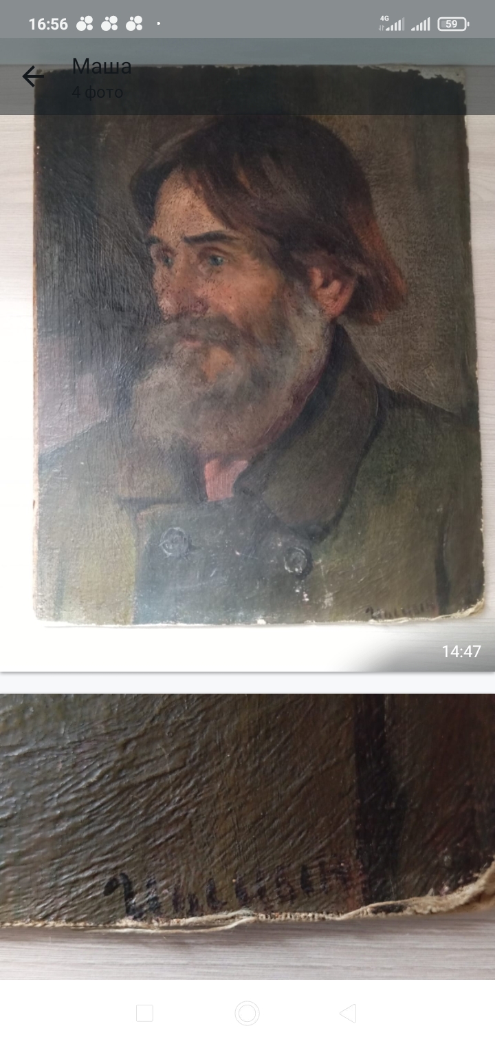Помогите пожалуйста, картина была привезена из Испании 25 лет назад, очень интересная у нее история. Непонятно кто автор , подписи нет . Может есть у кого мысли какие ? На копчике у девушки похоже на морду кота