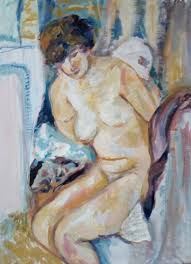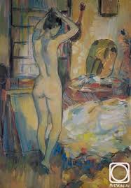 Кончаловский. Обнажённая перед зеркалом. Кота нет. Черняшкин абрис есть. В случае выше - он тоже есть. Но Кончаловский в своих фигурах видит, как якорь бросить. В фигуре выше на несколько постов якорь брошен впередушку... От этого и попа и верха приобретают вид независимых воздушных шариков... Может, что-то неудачное? Ну, тогда , смотрите на колорит... Моя ИМХА такая, то слишком легкомысленно...